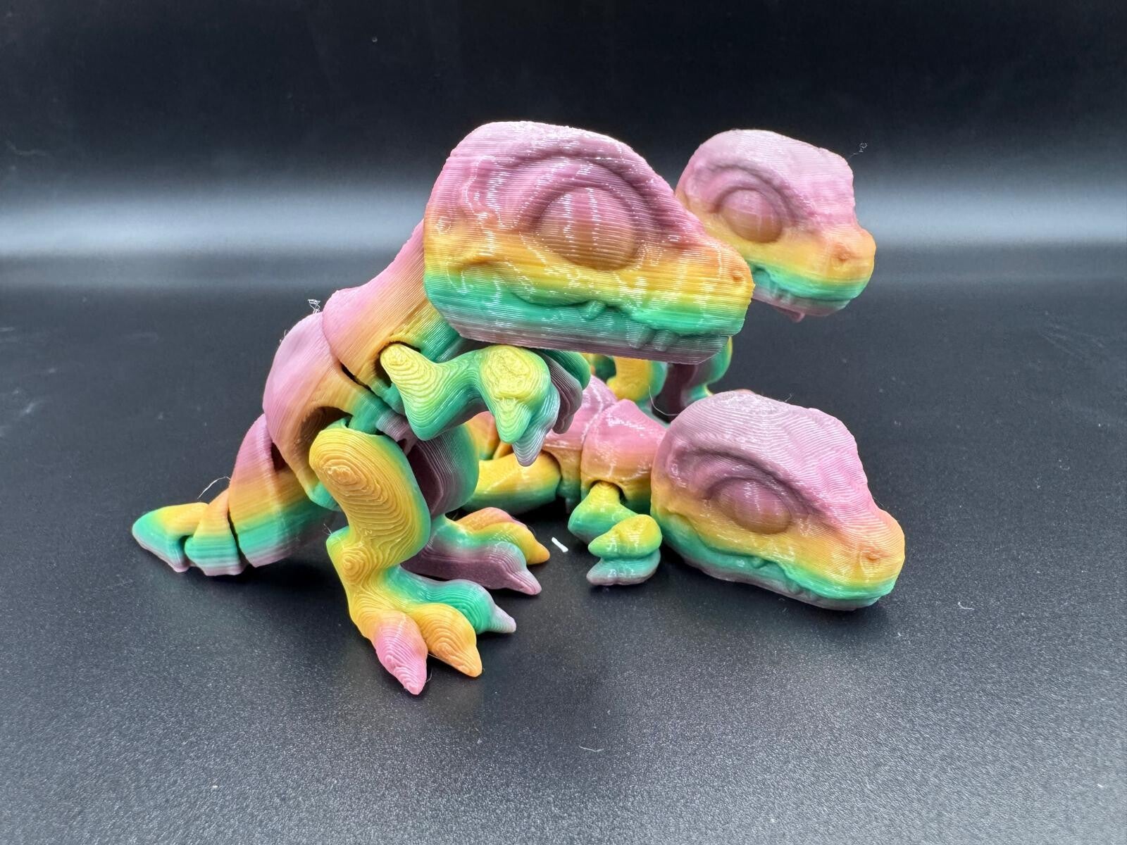 Deze figuren zijn eenvoudig te printen met je 3D-printer en zijn direct klaar voor gebruik zodra het printproces is voltooid. Laat je inspireren en voeg een speelse touch toe aan je creaties met onze articuleted dieren en figuren. Creëer een wereld vol spanning en dinosaurussen – de T-Rex en zijn prehistorische vriendjes wachten op jou!